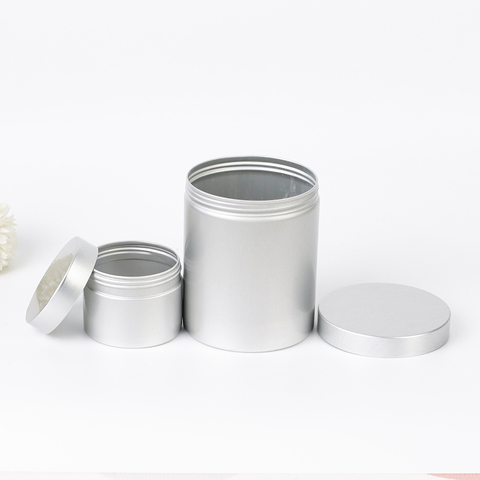 एल्यूमीनियम टिन जार रिफिल करने योग्य एल्यूमीनियम कंटेनर, स्क्रू ढक्कन के साथ स्क्रू ढक्कन गोल धातु पोर्टेबल टिन भंडारण जार